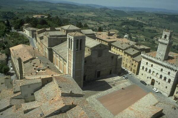 Close by is the Chiesa Sant'Agostino, built in 1427 with a mix of Gothic and Renaissance elements by the architect, Michelozzo. Note the elaborately carved portal. The Palazzo Bucelli (1648), also close by, has a lower facade into which are integrated Etruscan bas relief and funerary urns.