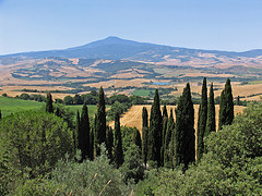 To the west, the view takes in Monte Amiata - the highest ancient volcano in Italy. Val D'Orcia is now protected as an artistic natural and cultural park. Trails, guides, brochures and museums all offer different means of exploring the region.